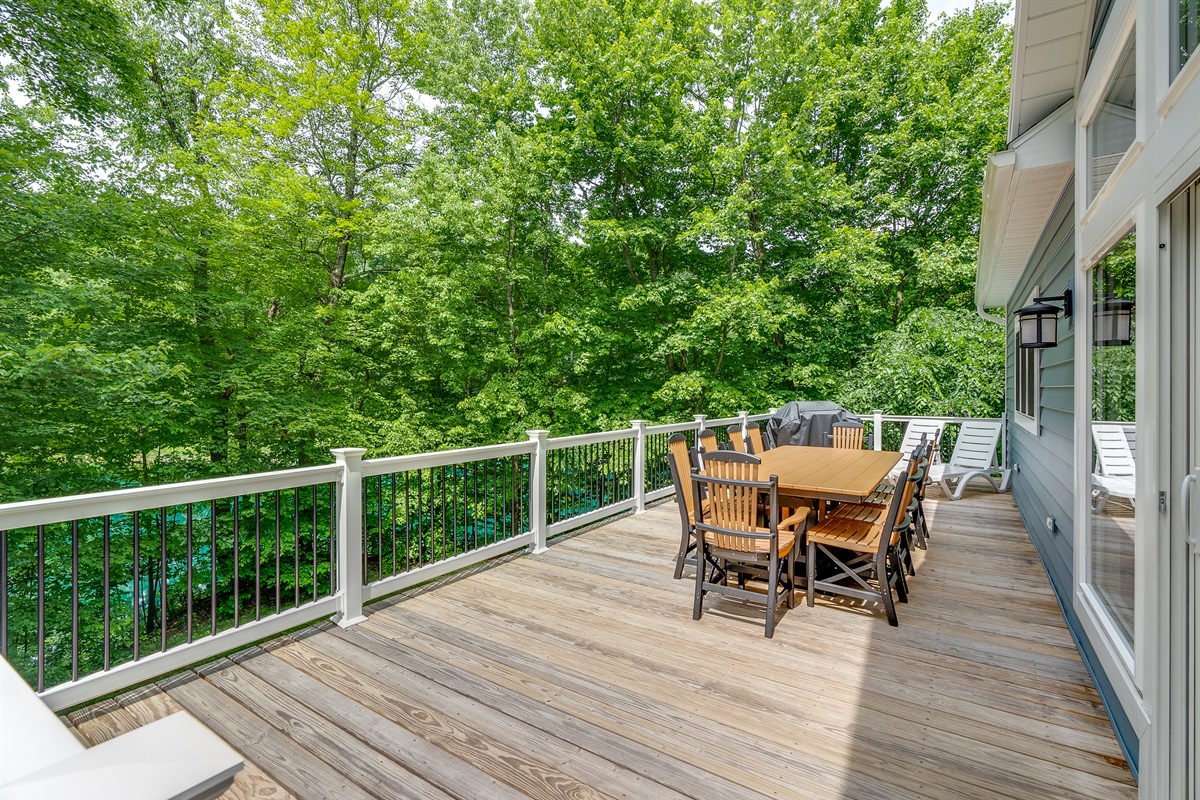 Elevated rear deck. 8 person table, 10 chairs, 2 lounge chairs, and a propane grillLanai/Gazebo (covered)