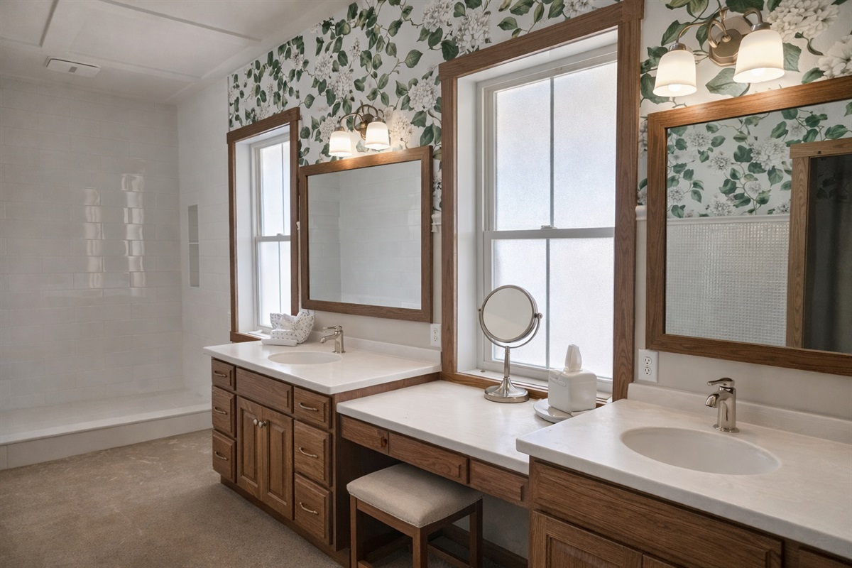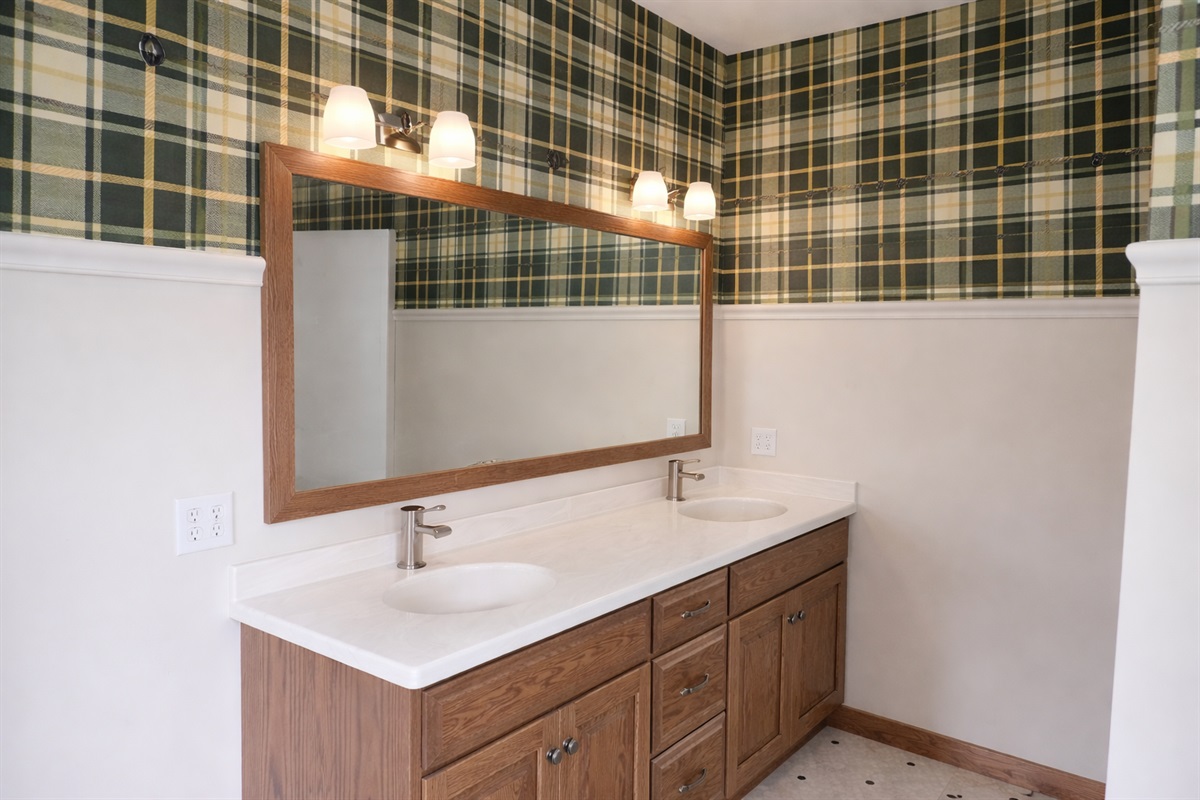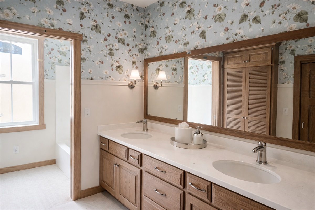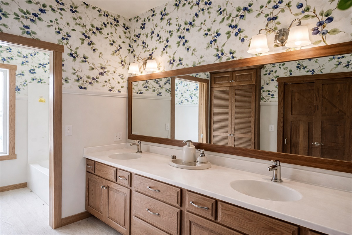 Double sink, tiled shower, freestanding tub, toilet & sinkBathroom 3 – Combination Tub/Shower, Toilet
